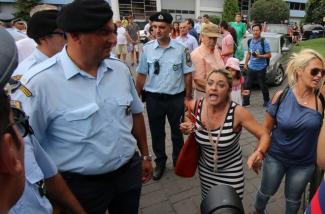 Ο Αλέξης Τσίπρας συνέχισε την πορεία του και οι αστυνομικοί επενέβησαν προκειμένου να μην επιτρέψουν στις γυναίκες να πλησιάσουν τον πρώην Πρωθυπουργό.
