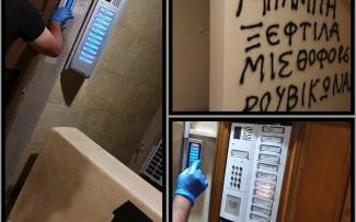 Όπως φαίνεται από σχετικό βίντεο που αναρτήθηκε στο Twitter, μέλη του Ρουβίκωνα, έφτασαν στην πολυκατοικία που μένει ο Μπάμπης Παπαδημητρίου και έγραψαν συνθήματα στον τοίχο.