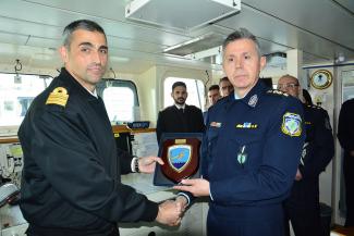 Οι σπουδαστές και ο επικεφαλής τους Αστυνομικός Διευθυντής Β. Βραντζάς έγιναν δεκτοί στην αίθουσα ενημερώσεων από τον Αρχηγό Στόλου, Αντιναύαρχο Ιωάννη Γ. Παυλόπουλο ΠΝ, όπου έλαβε χώρα μια ενημέρωση για την οργάνωση, τις δυνατότητες και τις δραστηριότητες του Αρχηγείου Στόλου.