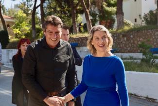 Η επίσκεψη πραγματοποιήθηκε με αφορμή την τελετή αγιασμού για την έναρξη εργασιών στα νέα γραφεία.