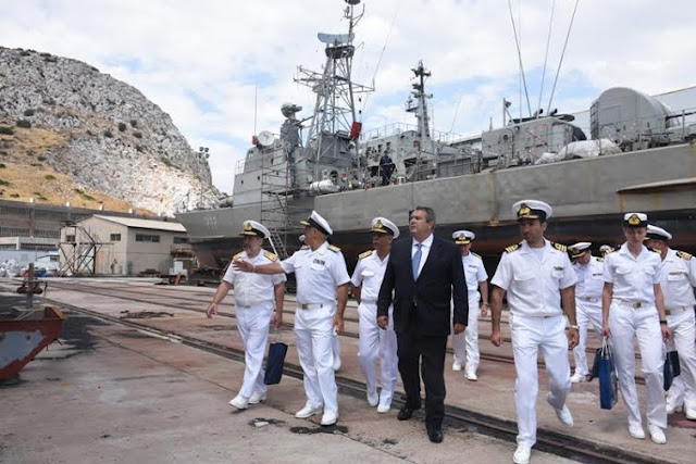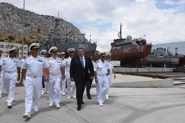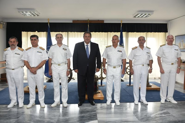 Υπουργός Εθνικής Άμυνας Πάνος Καμμένος, συνοδευόμενος από τον Αρχηγό ΓΕΝ Αντιναύαρχο Ευάγγελο Αποστολάκη ΠΝ, επισκέφθηκε σήμερα Δευτέρα 22 Ιουνίου 2015 το Αρχηγείο Στόλου, πολεμικά πλοία καθώς και τις ναυπηγοεπισκευαστικές εγκαταστάσεις του Ναυστάθμου Σαλαμίνας.
