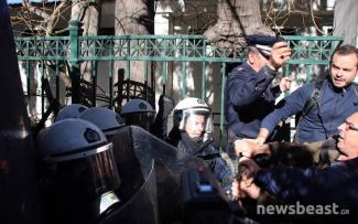 Κλούβες των ΜΑΤ είχαν κλείσει το δρόμο με σκοπό να εμποδίσουν τα μέλη της ΠΟΕΔΗΝ να φτάσουν έξω από το Μαξίμου. Κάποια μέλη, όμως, κατάφεραν να φτάσουν με αποτέλεσμα να επικρατήσει ένταση. Οι εργαζόμενοι υποστηρίζουν ότι δέχτηκαν σπρωξιές από αστυνομικούς.