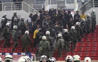 Οι παίκτες των δύο ομάδων είχαν ήδη βγει στον αγωνιστικό χώρο αρκετή ώρα νωρίτερα σε μια προσπάθεια να κατευνάσουν τα πνεύματα στην κερκίδα. Στάθηκε αδύνατο...