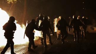 Επίθεση έγινε όμως και μία ώρα μετά τα μεσάνυχτα, εναντίον της διμοιρίας των ΜΑΤ στην οδό Χαριλάου Τρικούπη, με βόμβες μολότοφ.