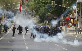 Τα επεισόδια βρίσκονταν μέχρι αργά τη νύχτα σε εξέλιξη, ενώ δεν υπάρχουν ανακοινώσεις για τραυματίες ή συλλήψεις.