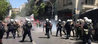 Οι δυνάμεις των ΜΑΤ έκαναν χρήση χημικών. Τα επεισόδια ξεκίνησαν οταν ομάδα διαδηλωτών επιχείρησε να σπάσει τον κλοιό των ΜΑΤ και να φθάσει στα γραφεία του Συνδέσμου Ελληνικών Βιομηχανιών. Αρχικά επιτέθηκαν εναντίον της κλούβας των ΜΑΤ με τις σημαίες τους. Ακολούθησε η επέμβαση των δυνάμεων των ΜΑΤ. Στην συνέχεια οι δυνάμεις των διαδηλωτών που προέρχονται κυρίως απο τον Ανταρσύα έφθασαν μέχρι το κτήριο της ΓΣΕΕ που βρίσκεται στην Φιλελλήνων. Εγραψαν συνθήματα εναντίον των συνδικαλιστών, που τους κατηγορούν οτι έχουν συμπράξει με την εργοδοσία, πέταξαν σακούλες με σκουπίδια και συνέχισαν την πορεία.