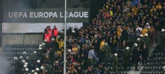 Το παιχνίδι στην Τούμπας διεκόπη στις αρχές του δευτέρου ημιχρόνου λόγω έντασης που προκλήθηκε απο τους οπαδούς της Ντόρτμουντ.