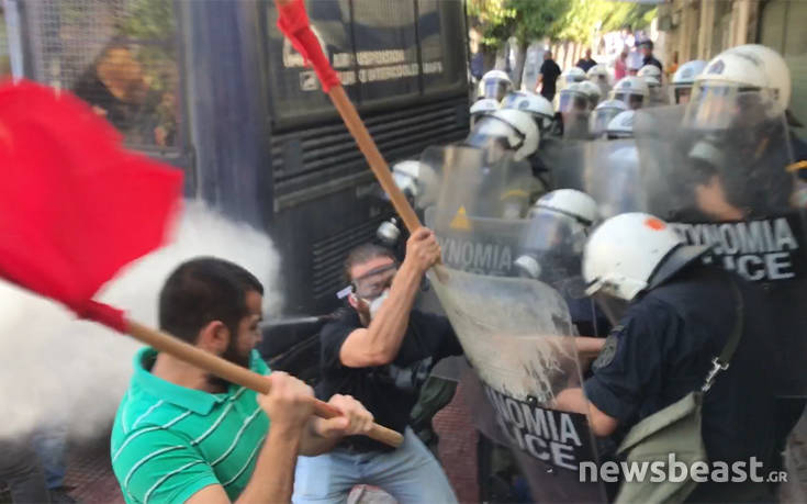 Τα επεισόδια έγιναν έξω από τη Βουλή, στην αρχή της λεωφόρου Βασιλίσσης Σοφίας, στο μπλόκο που είχαν δημιουργήσει τα ΜΑΤ με κλούβες, για να εμποδίσουν τους φοιτητές να περάσουν.