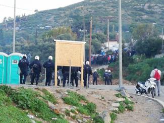 Οι μετανάστες κατέστρεψαν χημικές τουαλέτες που βρίσκονται στο σημείο, ενώ για άγνωστο λόγο άρχισε ο πετροπόλεμος εναντίον των αστυνομικών δυνάμεων.