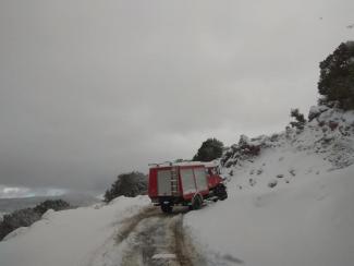 Φορτηγό του δήμου και πυροσβεστικό όχημα από την περιοχή του Τζερμιάδου έσπευσε στην περιοχή καθώς και ερπυστριοφόρο άρμα με ομάδα διάσωσης 5 ατόμων από την 3η ΕΜΑΚ.