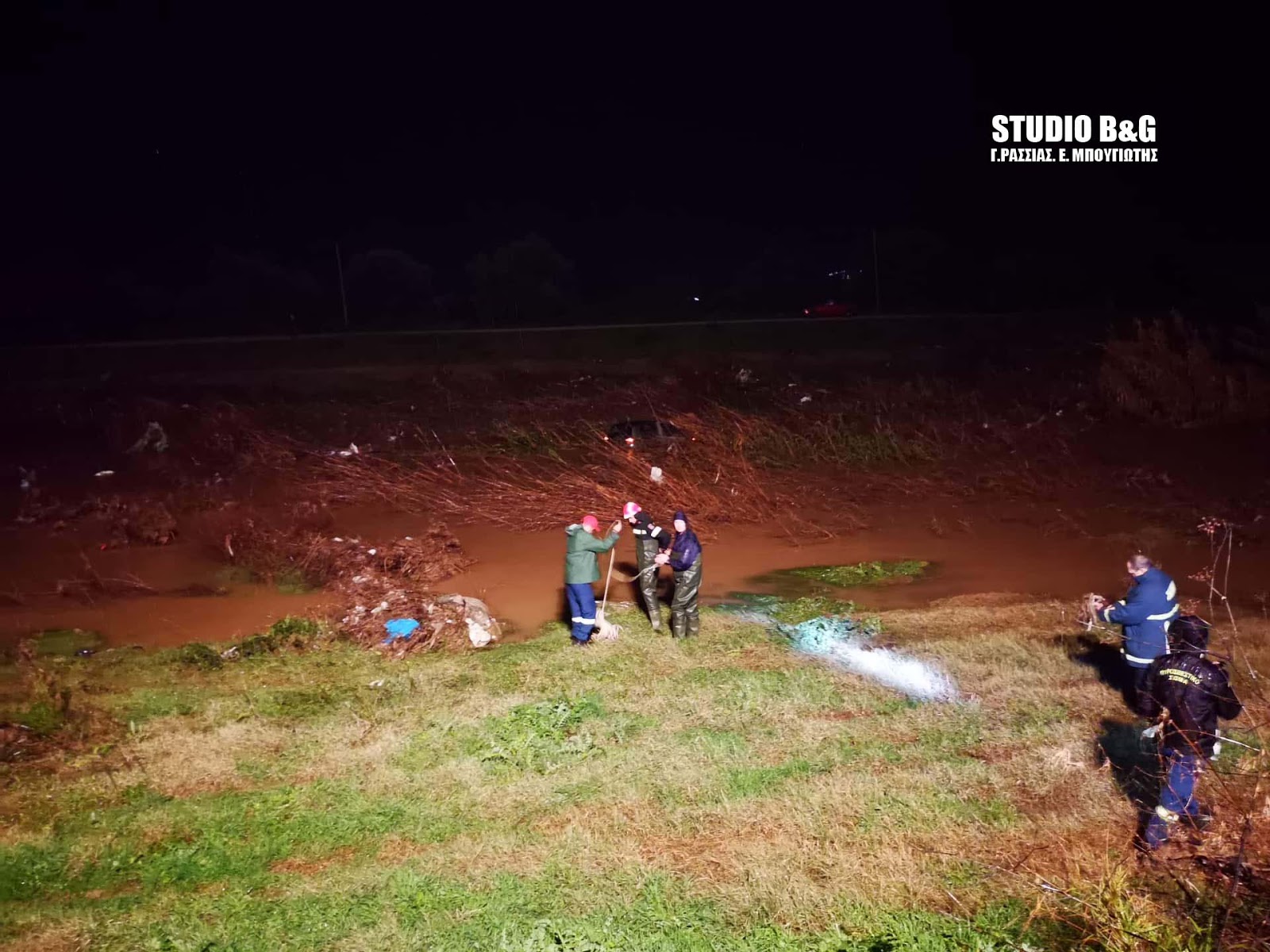 Από την Πυροσβεστική έγινε επιχείρηση για να προσεγγίσουν το όχημα που βρέθηκε με αναμμένα τα φώτα στην κήτη του ποταμού Πάνιτσα.