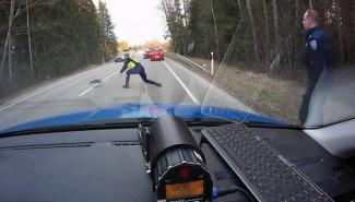 Συνήθως σε αυτές τις περιπτώσεις, η Αστυνομία κόβει την κυκλοφορία εκατέρωθεν του σημείου το μπλόκου για ικανή απόσταση και απλώνει την ταινία σε όλο το πλάτος του δρόμου, περιμένοντας να περάσει ο καταδιωκόμενος από πάνω. Εδώ όμως δεν συνέβη τίποτα από τα παραπάνω. Η κυκλοφορία κόπηκε στο αντίθετο ρεύμα και ένα Εσθονός αστυνομικός από το πλήρωμα του περιπολικού που φαίνεται στο video, περιμένει απλώς να περάσει ο μεθυσμένος οδηγός.