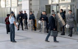 Με συνθήματα όπως "φασίστες κ.. έρχονται κρεμάλες" εξέφρασαν έντονα την οργή τους για την ετυμηγορία του δικαστηρίου. Η ένταση αποκλιμακώθηκε όταν διμοιρία της Αστυνομίας εισήλθε στην αίθουσα και έβγαλε έξω όσους φώναζαν και αποδοκίμαζαν την Έδρα.