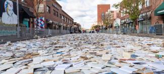 Έναν από τους κύριους δρόμους της πόλης Αν Άρμπορ στην Πολιτεία του Μίσιγκαν μετέτρεψε σε λαμπερό ποτάμι από 11.000 βιβλία, η ισπανική ομάδα σχεδιαστών luzinterruptus.