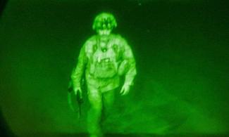 Η «ιστορικη» αυτή φωτογραφία, όπως λέγεται, δεν απεικονίζει μόνον έναν απλό στρατιώτη αλλά τον διοικητη της 82ης Αερομεταφερόμενης Μεραρχίας του Αμερικανικού Στρατού στο Αφγανιστάν, τον Υποστράτηγο Κρις Ντόνιαχου, ο οποίος φευγει τελευταίος και φοραει πλήρης εξάρτηση για συνθήκες πολέμου.