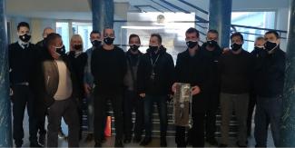 Επίσκεψη για πρωτοχρονιάτικες ευχές πραγματοποίησε η Ένωση Αστυνομικών υπαλλήλων Ηλείας στην Διεύθυνση Αστυνομίας Ηλείας ενώ μοίρασε Μάσκες πολλαπλών χρήσεων στο προσωπικό με το λογότυπο της Ένωσης και ωρολόγια τοίχου σε κάθε υπηρεσία.