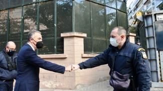 Στη συνέχεια ο κ. Καλαφάτης επισκέφθηκε το Αστυνομικό Τμήμα Λευκού Πύργου στην πλατεία Αριστοτέλους, το Τμήμα Ασφαλείας Λευκού Πύργου στην οδό Δωδεκανήσου, τη διμοιρία των ΜΑΤ που εδρεύει έξω από το Τουρκικό Προξενείο και το Φυλάκιο Πύλης του Διοικητηρίου και αντάλλαξε ευχές για το νέο χρόνο με τις γυναίκες και τους άνδρες της Ελληνικής Αστυνομίας.