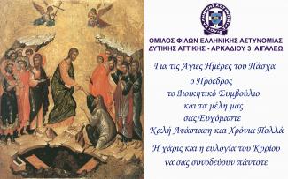 Ο Όμιλος Φίλων της Ελληνικής Αστυνομίας εύχεται σε όλους τους Αστυνομικούς καλή Ανάσταση και χρόνια πολλά για τις άγιες μέρες του Πάσχα!
