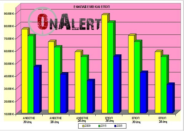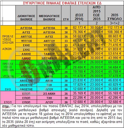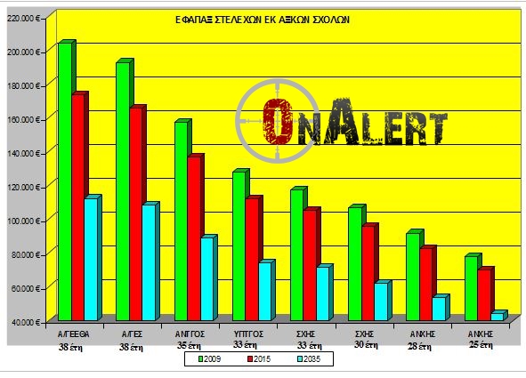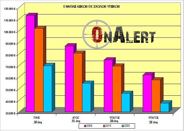 Δείτε μέσα από συγκριτικούς πίνακες και γραφήματα το ποσό ΕΦΑΠΑΞ που δικαιούνται τα στελέχη των ΕΔ ανά κατηγορία ΑΞΚΟΙ, ΥΠΞΚΟΙ, ΕΜΘ και ΕΠΟΠ τα έτη 2009, 2015 και 2035.
