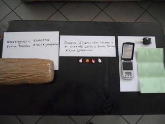 Μία αυτοσχέδια συσκευασία, η οποία περιείχε ποσότητα ακατέργαστης κάνναβης, μεικτού βάρους 924 γραμμαρίων.