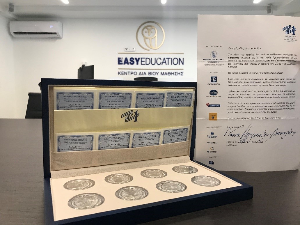 Με γνώμονα τα παραπάνω και συναισθανόμενοι την ευθύνη μας που απορρέει της συμμετοχής μας στην εκπαιδευτική κοινότητα από το μετερίζι της Δια Βίου Μάθησης, στηρίζουμε τις δράσεις της Επιτροπής «Ελλάδα 2021» για την υλοποίηση του σκοπού της, αποκτώντας μία από τις 2600 συλλεκτικές κασετίνες του νομισματικού της προγράμματος.