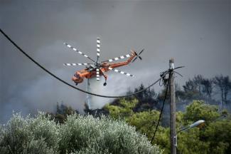 Περίπου 30 οχήματα και 90 πυροσβέστες, τρία πεζοπόρα τμήματα με την συνδρομή πυροσβεστικών αεροσκαφών και ελικοπτέρων προσπαθούν να ελέγξουν το μέτωπο της πυρκαγιάς, που προς το παρόν δεν απειλεί κατοικημένες περιοχές.