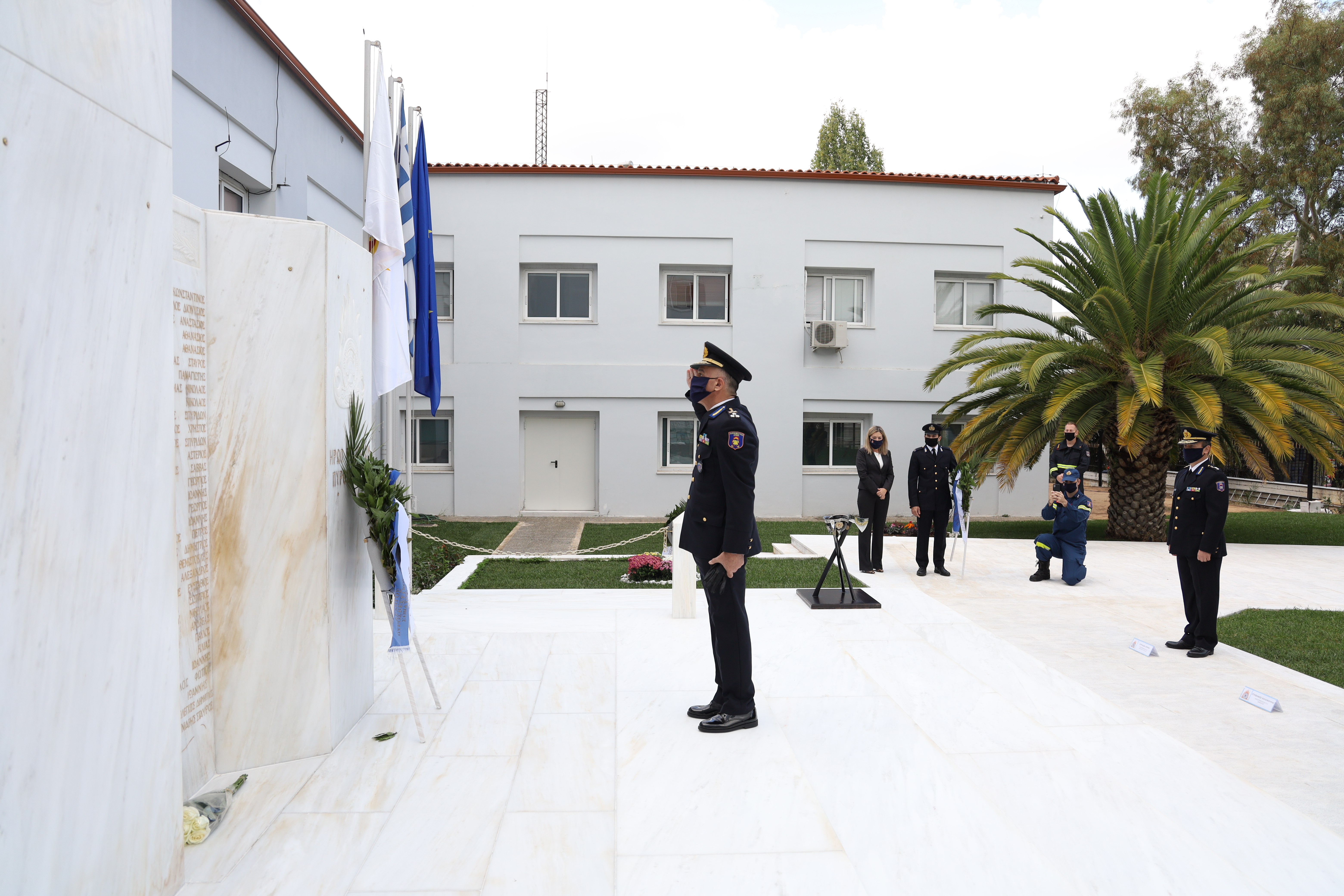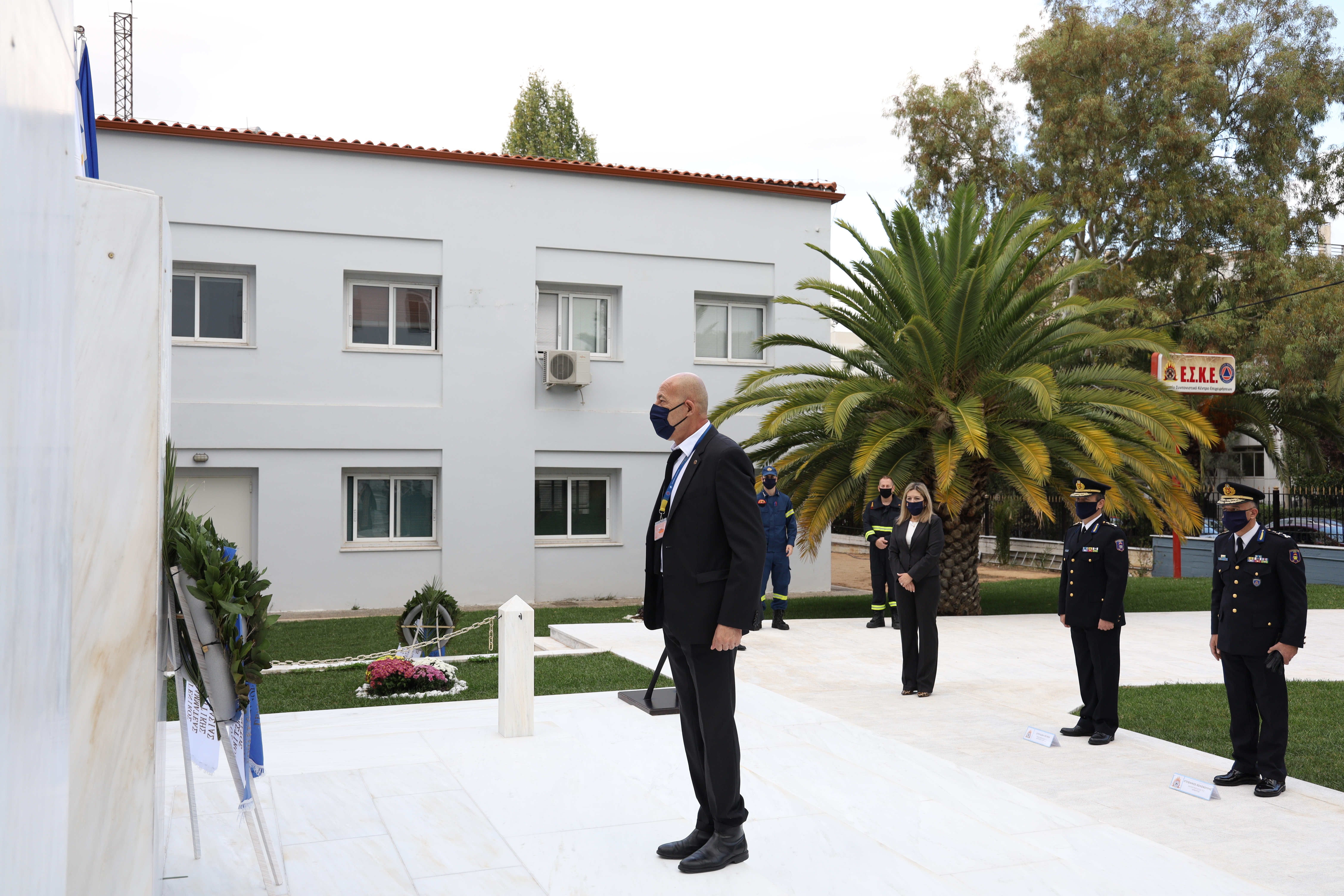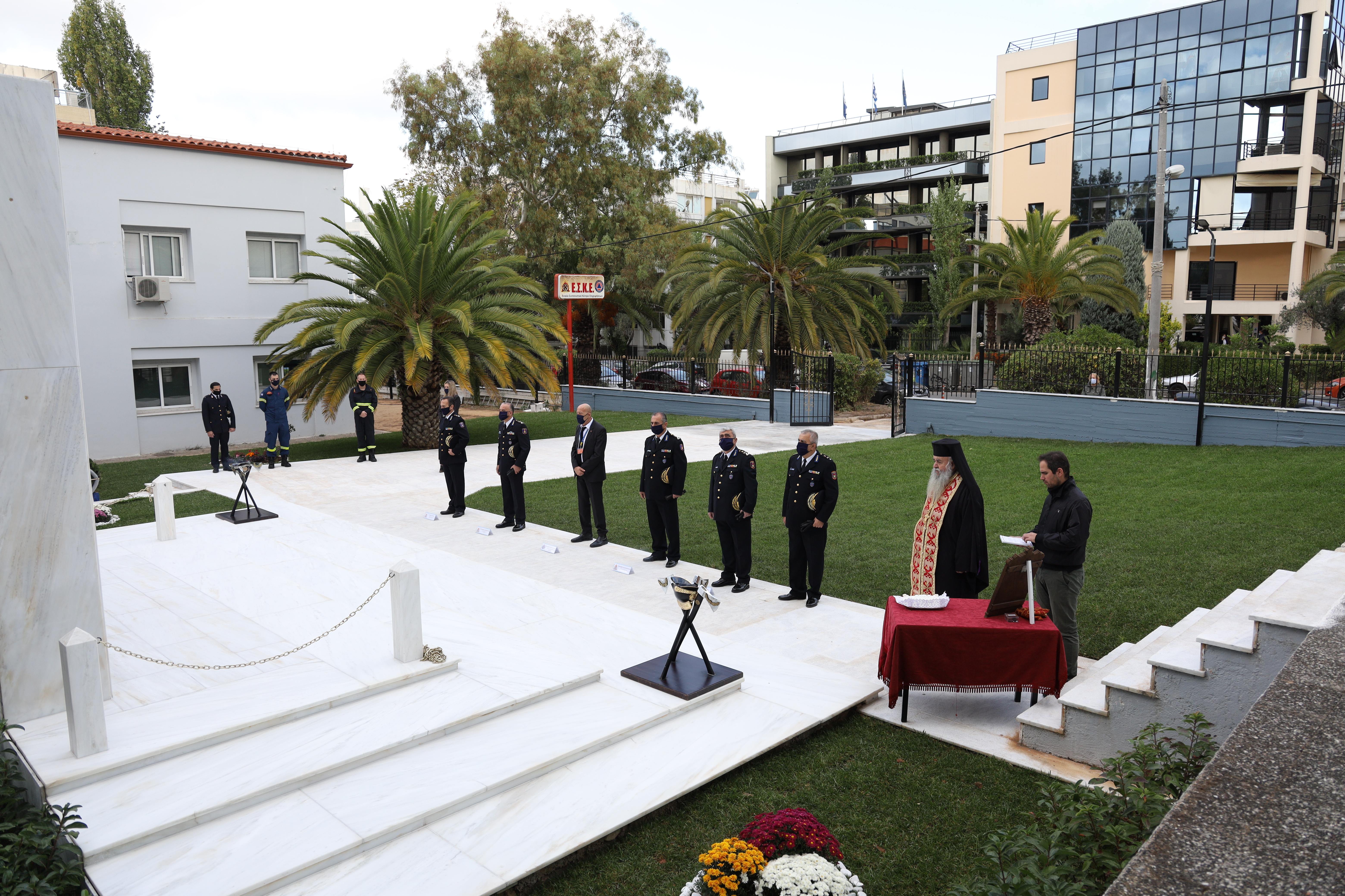 Παρουσία του Γενικού Γραμματέα Πολιτικής Προστασίας Βασίλειου Παπαγεωργίου, ο οποίος εκπροσώπησε τον πρωθυπουργό και την κυβέρνηση καθώς και του Αρχηγού του Πυροσβεστικού Σώματος Αντιστράτηγου ΠΣ Στέφανου Κολοκούρη, πραγματοποιήθηκε σήμερα, 12 Νοεμβρίου 2020, επιμνημόσυνη δέηση στο Μνημείο Πεσόντων Πυροσβεστών, στις εγκαταστάσεις του Εθνικού Συντονιστικού Κέντρου Διαχείρισης Κρίσεων (Ε.Σ.ΚΕ.ΔΙ.Κ.) στο Χαλάνδρι Αττικής, προς τιμή των ηρωικών συναδέλφων πυροσβεστών που έχασαν τη ζωή τους κατά την εκτέλεση του καθήκοντος.