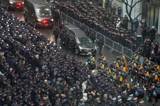 Χιλιάδες αστυνομικοί της πόλης της Νέας Υόρκης παρατάχθηκαν στην Πέμπτη Λεωφόρο του Μανχάταν εχτές για να τιμήσουν έναν συνάδελφό τους, που σκοτώθηκαν την περασμένη εβδομάδα εν ώρα καθήκοντος, ενώ είχε σπεύσει σε ένα περιστατικό ενδοοικογενειακής βίας.