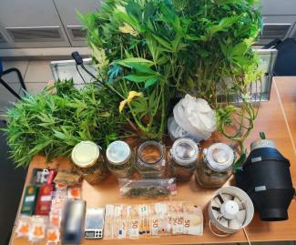 - Εννέα δενδρύλλια κάνναβης τα οποία καλλιεργούνταν επιμελώς σε δύο ειδικά διαμορφωμένους χώρους, σε πλήρη ανάπτυξη, ύψους έως 1,5 μέτρου σε ισάριθμές γλάστρες,