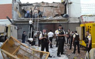 Η ανταλλαγή πυρών με την αστυνομία κράτησε δύο ώρες ενώ ένας αστυνομικός σκοτώθηκε κατά την έκρηξη στα γραφεία της εταιρείας.