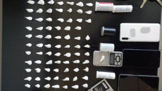 Σε έρευνα που πραγματοποιήθηκε στην οικία του βρέθηκαν και κατασχέθηκαν, μικροποσότητα κοκαΐνης, 2 ζυγαριές ακριβείας και κινητό τηλέφωνο.