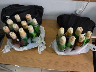 Εντοπίστηκαν χθες (13-3-2021), σε δασώδη περιοχή της Πάτρας, από αστυνομικούς της Υποδιεύθυνσης Ασφαλείας Πατρών (17) αυτοσχέδιοι εμπρηστικοί μηχανισμοί, τύπου βόμβας μολότοφ.