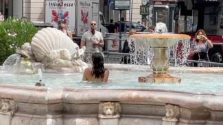 Μόλις οι αστυνομικοί πήραν είδηση την ολόγυμνη Ιταλίδα να κολυμπά αμέριμνη στο σιντριβάνι, έσπευσαν να της ζητήσουν να απομακρυνθεί από το σημείο.