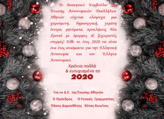 Το Διοικητικό Συμβούλιο της Ένωσης Αστυνομικών Υπαλλήλων Αθηνών εύχεται ολόψυχα μια χαρούμενη, δημιουργική, γεμάτη όνειρα, μηνύματα, προκλήσεις Νέα Χρονιά με όμορφες & ξεχωριστές στιγμές! Είθε το έτος 2020 να είναι ένα έτος αναίμακτο για την Ελληνική Αστυνομία και τον Έλληνα Αστυνομικό.