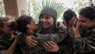 Ντυμένες με γιλέκα καμουφλάζ κρατούν στα χέρια τους AK-47 και χειροβομβίδες και τονίζουν ότι όσα συμβαίνουν εκεί "είναι ένα έγκλημα κατά της ανθρωπότητας" και προσθέτουν ότι σκοτώνουν δέκα αντάρτες του Ισλαμικού Κράτους την ημέρα.