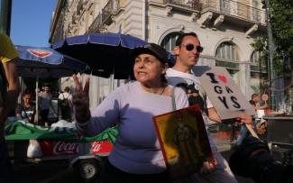 «Μετανοείτε, αυτά είναι του σατανά» έλεγε, μεταξύ άλλων, απευθυνόμενη προς τους συμμετέχοντες στην παρέλαση.