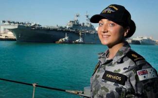 Αν και οι δεσμοί σε μια οικογένεια με ρίζες από τη Μεσόγειο είναι ισχυροί, όσες γενιές και αν περάσουν, εντούτοις μια ελληνοαυστραλή βρήκε μια μεγαλύτερη οικογένεια πάνω στο πολεμικό πλοίο HMAS Darwin. Η Kathy Kiryakos, από το προάστιο της Μελβούρνης, Oakleigh, αποτελεί το πλήρωμα του Δαρβίνου (Darwin) που διεξάγει περιπολίες ασφάλειας στη θάλασσα στην περιοχή της Μέσης Ανατολής, για την Επιχείρηση Manitou.