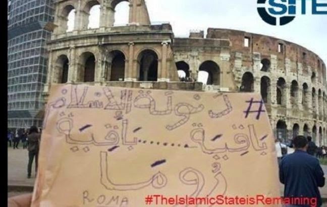 Σε μία φωτογραφία μάλιστα στον ισλαμιστικό ιστότοπο SITE εμφανίζεται κάποιος να στέκεται μπροστά στο Κολοσσαίο και να κρατά ένα χειρόγραφο του Ισλαμικού Κράτους.