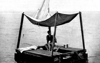 Όντας στη θάλασσα για δύο ώρες βρήκε μια τετράγωνη ξύλινη σχεδία δύο μέτρων με λίγες προμήθειες φαγητού και νερού. Ωστόσο, γρήγορα ξέμεινε από αυτές και με ένα καρφί από τη σχεδία και το σύρμα από το φακό του κατάφερε να φτιάξει ένα καλάμι ψαρέματος. Επίσης, έφτιαξε και ένα αυτοσχέδιο μαχαίρι από το υλικό μιας κονσέρβας που είχε βρει στη σχεδία και συνέλεγε το νερό της βροχής στο ύφασμα του σωσίβιου.