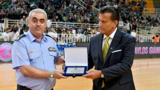 Σε αυτό το πλαίσιο ο πρόεδρος της ομάδας, Βασίλης Παρθενόπουλος, προσέφερε αναμνηστική πλακέτα στον αρχηγό του πυροσβεστικού σώματος Αντιστράτηγο Αλέξιο Ράπανο.