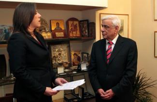 Περίπου στις 22:30 το βράδυ της Τετάρτης και λίγη ώρα μετά το αποτέλεσμα της ψηφοφορίας στο ελληνικό κοινοβούλιο, το οποίο ανέδειξε τον Προκόπη Παυλόπουλο νέο Πρόεδρο της Δημοκρατίας, με 233 ψήφους υπέρ, η Πρόεδρος της Βουλής, Ζωή Κωνσταντοπούλου, τον επισκέφθηκε για να του ανακοινώσει το αποτέλεσμα.