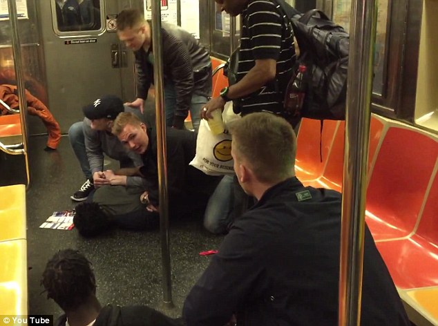 «Σκεφτήκαμε ότι κάποιος χρειαζόταν βοήθεια», αφηγήθηκε ο 25χρονος δόκιμος Σάμουελ Κβάρζελ. Ο ίδιος και οι συνάδελφοί του έσπευσαν στο σημείο που τους υπέδειξε ο οδηγός και είδαν ότι δύο άστεγοι είχαν πιαστεί στα χέρια. «Ο ένας είχε ανέβει πάνω στον άλλο κι έτσι τους χωρίσαμε», είπε ο Μάρκους Άσμπεργκ, επίσης 25 ετών, στην εφημερίδα New York Post. Ο Άσμπεργκ προστάτευσε το θύμα, ενώ οι άλλοι τρεις Σουηδοί ακινητοποίησαν τον δράστη και τον παρέδωσαν στη συνέχεια στους αμερικανούς συναδέλφους τους.