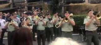 Ανάμεσα σε εκείνους που εντυπωσιάστηκαν από την μπάντα ήταν και η σύζυγος του υπουργού Αμυνας Πάνου Καμμένου, Ελενα Τζούλη, η οποία έσπευσε να καταγράψει το στιγμιότυπο με το κινητό της.