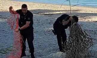 Οι αστυνομικοί κατέβηκαν στην αμμουδιά εντόπισαν την φωλιά όπου η χελώνα άφησε τα αυγά της και την οριοθέτησαν για την προστασία της.