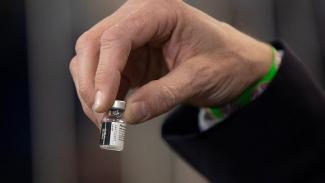 Παρασκευασμένο στις ΗΠΑ, το εμβόλιο των Pfizer-BioNTech θα διανεμηθεί άμεσα για τον εμβολιασμό των νοσοκομειακών υπαλλήλων που φροντίζουν ασθενείς με COVID, είπε ο ίδιος.