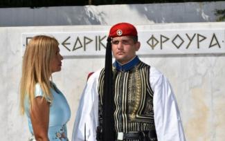 Διασχίζοντας κεντρικό δρόμο της Αθήνας ξαφνικά βλέπω μια μητέρα να στέκεται δίπλα στον Εύζωνα γιό της, την ώρα της σκοπιάς με το βλέμμα της καρφωμένο πάνω του.