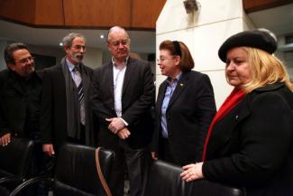 Κατόπιν, έλαβε το λόγο ο αρχιτέκτονας Μιχάλης Λεφαντζής, που μίλησε για τον Λέοντα και τη σχέση του με τον Τύμβο. Ξεκίνησε αναφέροντας μια ιστορική μαρτυρία: Το 1916 μια βρετανική ταξιαρχία ετοιμαζόταν να μεταφέρει 1000 κομμάτια από τον περίβολο, μαζί με τον Λέοντα, στη Βρετανία. Οι Βούλγαροι και οι Αυστριακοί επιτέθηκαν στις φορτηγίδες οι οποίες ναυάγησαν, οπότε τα αρχαία μέλη σώθηκαν - αν και παρέμειναν στο βυθό του Στρυμόνα.
