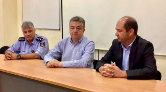 Ο Περιφερειάρχης κατά την επίσκεψή του είχε συνάντηση τόσο με την Διοίκηση όσο και με τους αξιωματικούς της Π.Ε. Ηρακλείου παρουσία και του Διοικητή Ηρακλείου Εμμανουήλ Δαμουλάκη, ανακοινώνοντας πως η Περιφέρεια θα στηρίξει με κάθε τρόπο την Πυροσβεστική Υπηρεσία στο νησί για να αποκτήσει την υλικοτεχνική υποδομή που έχει ανάγκη.