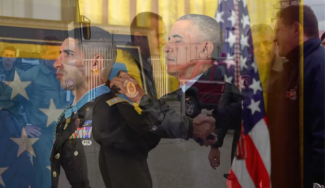 Στη φωτογραφία ο Αμερικανός Πρόεδρος Barack Obama παρασημοφορεί με το Μετάλλιο της Τιμής τον απόστρατο λοχαγό Florent Α Groberg,για την ανδρεία που επέδειξε σε μάχη στο Αφγανιστάν. Ο ίδιος ο Πρόεδρος των ΗΠΑ. Και πιο "αχνά" η χειραψία Ελλήνων πιλότων μ΄ ένα πολίτη. Οι δυο φωτογραφίες μαζί έχουν τη σημασία τους.