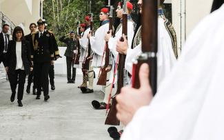 Ανήμερα του Αγίου Γεωργίου, προστάτη του Στρατού Ξηράς, η Πρόεδρος της Δημοκρατίας Κατερίνα Σακελλαροπούλου επισκέφθηκε την Προεδρική Φρουρά και εξέφρασε την ιδιαίτερη τιμή και χαρά της, που βρέθηκε μαζί με τους Εύζωνές μας.